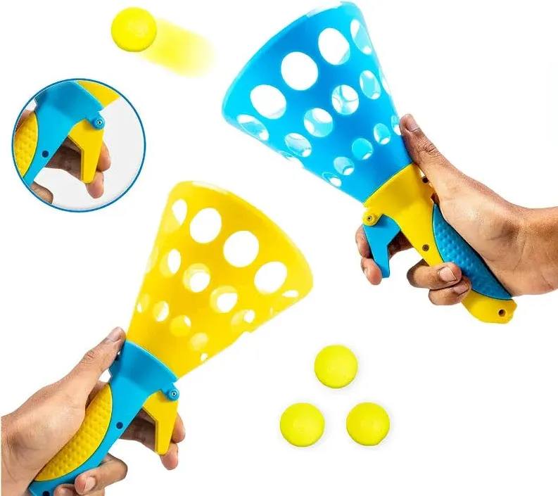 items 2: articleHeading: Storio Click and Catch Twin Ball Launcher Game with 3 Balls Indoor Outdoor Toy Set Pop Catch Ball Play Fun Boys Girls Multicolor