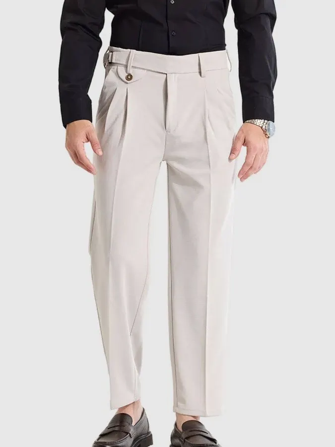 title: Snitch Men's Cream Mid Rise Korean Trousers | Relaxed Fit | Polyester Blend | Plain | Korean | Cream Pants For Men | Elevated