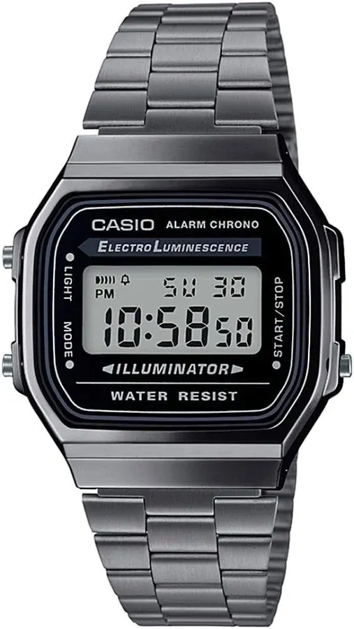 title: CASIO Vintage A168WGG-1BDF Black Digital Dial Black Stainless Steel Band D182