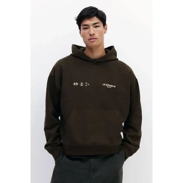 title: Men - Brown/Le Strade Di Oversized Fit Boxy Hoodie - Size: L - H&M