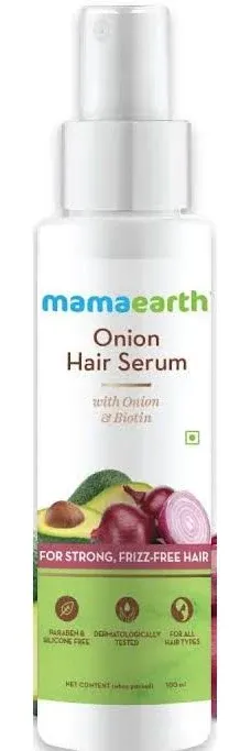 title: Mamaearth Sustainable Onion Hair Serum with Biotin for Strong & Frizz-Free Hair 100 ml