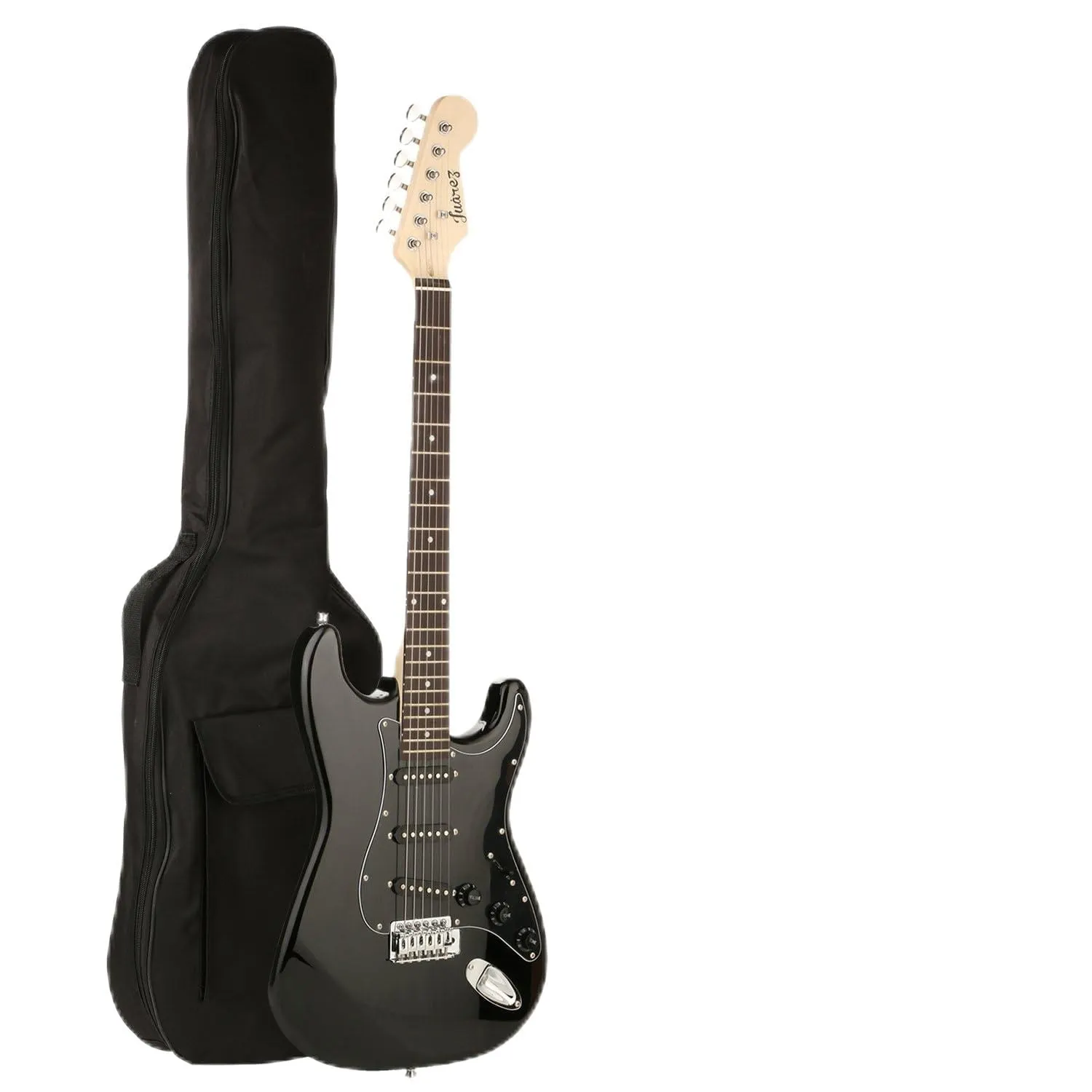 items 2: content: This guitar comes as a complete package, including a gig bag, tremolo rod, cable, picks, and an Allen key, allowing new players to start playing immediately without needing to purchase additional accessories.
