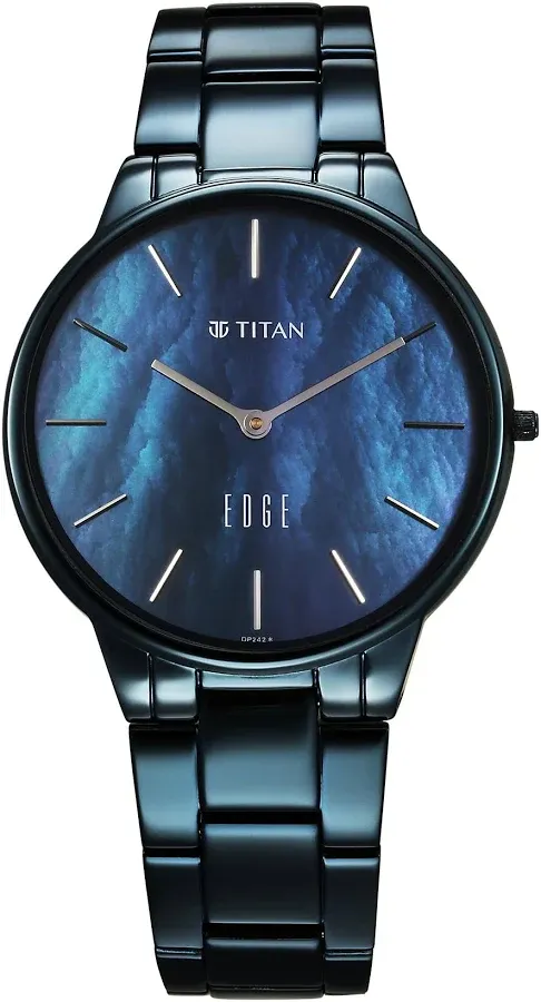 title: Titan Titan Edge Blue Mop Dial Blue Stainless Steel Strap Analog Watch - For Women