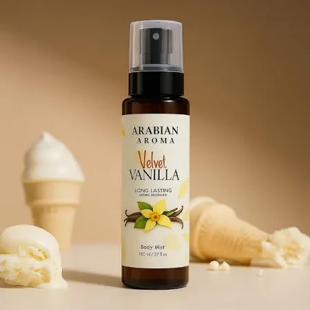 title: Arabian Aroma Velvet Vanilla Body Mist for Women | Creamy & Warm Vanilla Fragrance | Long-Lasting Mist Spray | 110ml