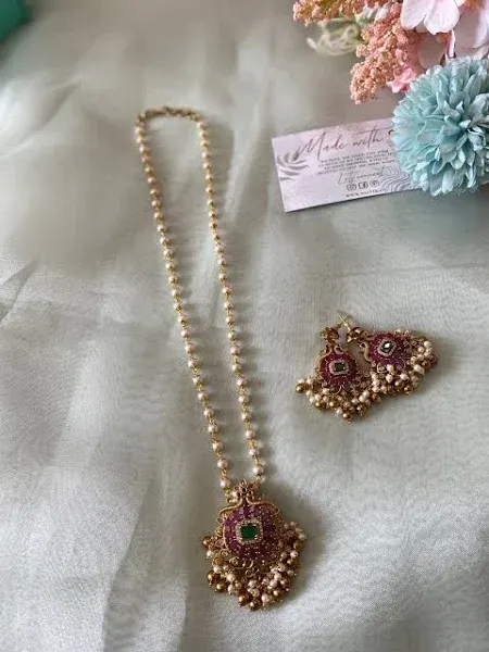 title: AD Pendant Pearl chain with earrings by Daivik