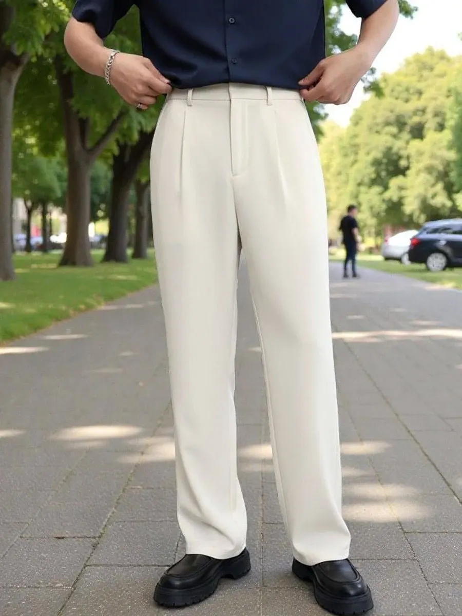 title: COVZ Men Smart Loose Fit Easy Wash Pleated Trousers
