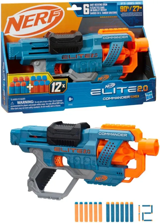 title: Hasbro Nerf Elite 2.0 Commander Rd-6 Blaster 12 Darts 6-Dart Rotating Drum Gift Toys for Kids Teens and Adults