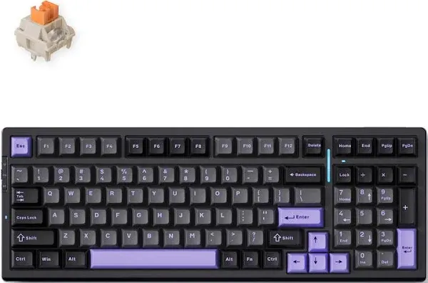 snippets: This keyboard boasts a 98 key layout, aiming to give you the functionality of a full-size keyboard in a more compact form factor., The compact 98 key layout is a smart design choice., It includes all the essential function keys and a number pad, but in a more condensed format.