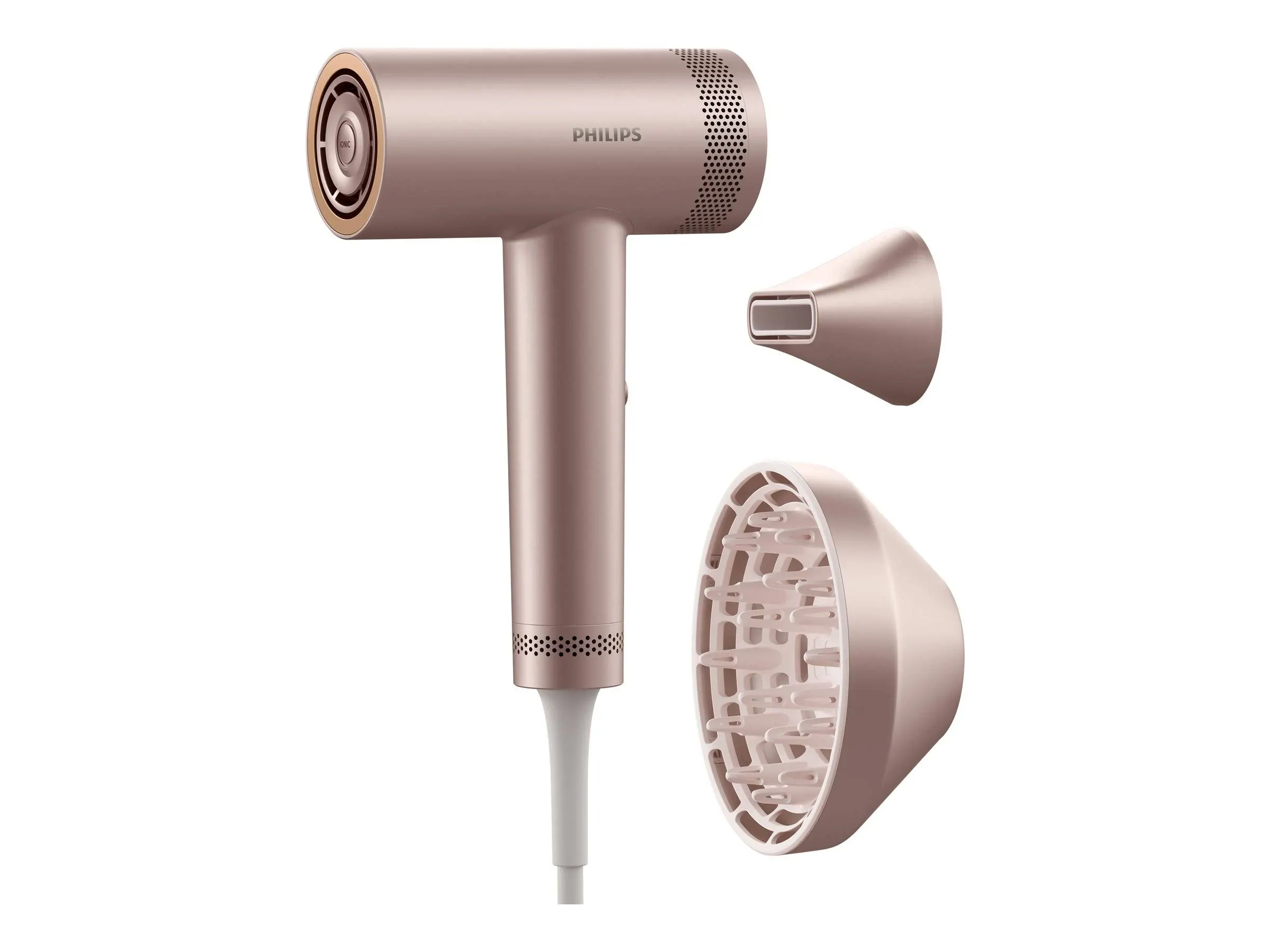 title: Hair Dryer with ThermoShield Advanced Technology | Ion Function | Brushless DC Motor | Scalp Care | 1400 W | Rose Champagne | BHD837/10
