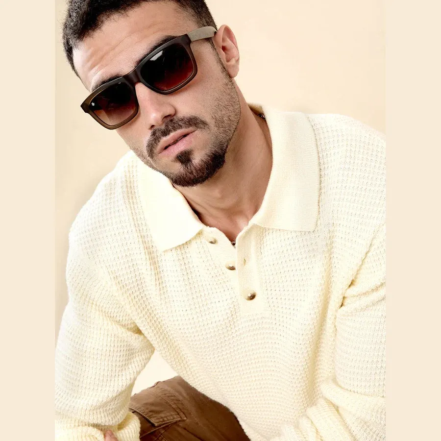 title: Wrogn Self Design Collared Neck Casual Men Beige Sweater