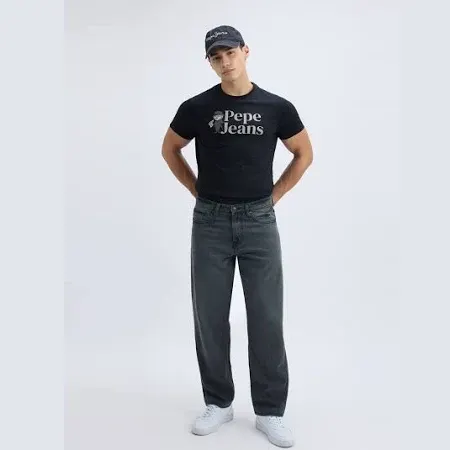 title: Pepe Jeans Men Black Relaxed Barrel Fit Mid Rise Jeans