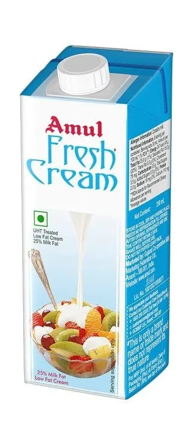 title: Amul Fresh Cream - 25% Milk Fat Low Fat 250 ml