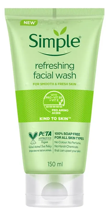 detailedReviews: detailedReviews 1: content: The Simple Kind to Skin Refreshing Facial Wash is a gentle, no-fuss cleanser that’s ideal for sensitive or easily irritated skin. It has a mild gel-based formula that effectively removes dirt, oil, and light makeup without stripping the skin of its natural moisture. Free from harsh chemicals, artificial perfume, and dyes, it’s dermatologically tested and hypoallergenic, making it a safe everyday choice for those prone to breakouts, redness, or dryness. While it doesn’t offer advanced benefits like exfoliation or acne treatment, it excels as a basic cleanser, especially for beginners or those with a minimalist routine. However, those with very oily or acne-prone skin may find it too mild, and it may not remove heavy makeup or sunscreen effectively on its own. Overall, it’s a budget-friendly, reliable option that keeps skin clean, calm, and refreshed without overcomplicating your routine.
