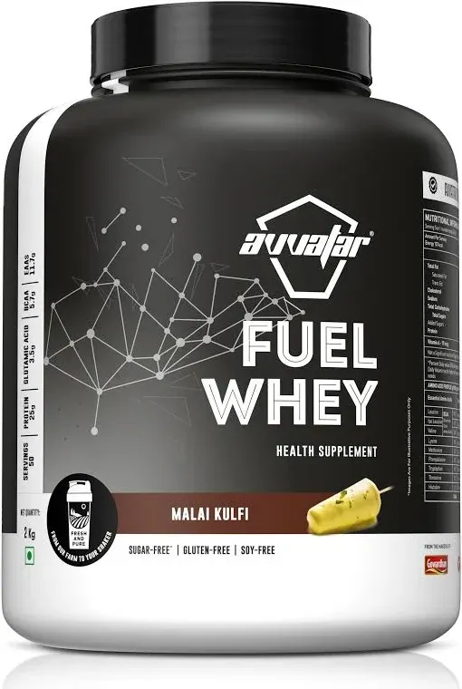 items: items 1: content: Avvatar Fuel Whey offers a substantial 25g of protein per 40g scoop, making it a good option for individuals looking to supplement their protein intake for fitness goals. It also provides a significant amount of essential amino acids (11.7g EAA) and branched-chain amino acids (5.7g BCAA) per serving, which are crucial for muscle repair and growth.
