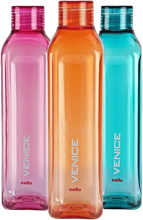 title: Cello Venice Plastic Water Bottle (Assorted) - 1 Litre : set of 3