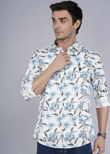 title: U.S. Polo Assn. Denim Co. Floral Printed Pure Cotton Shirt, White (46)