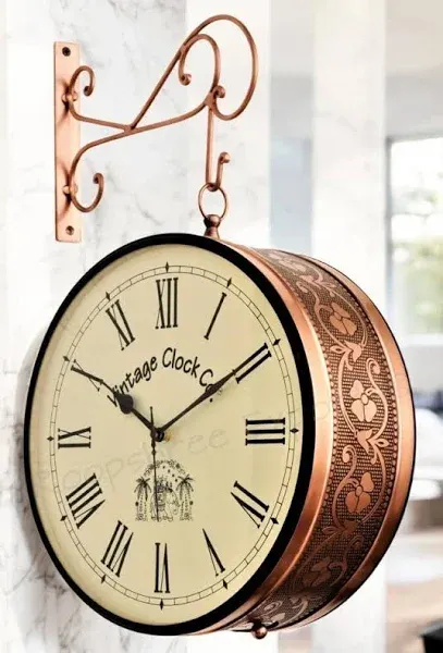 detailedSources: items: items 1: articleHeading: Amazon.in: Buy Vintage Clock Handcrafted Double Side Clock with Roman Numbers 1 Year Warranty (12 Inches Size, Rose Gold Finish, Floral Design, Vc-65471) - Analog, Online at Low Prices in India
