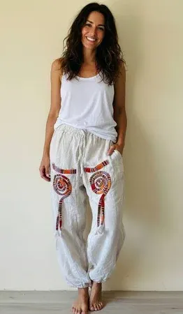 articleSummary: This article snippet highlights the versatility of similar cotton harem pants, mentioning their suitability for streetwear, loungewear, yoga, festivals, and shopping, and notes the presence of pockets.