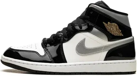 title: Nike Air Jordan 1 Mid SE Patent Black White Metallic Silver Metallic Gold BLACK / UK 10 Sneaker