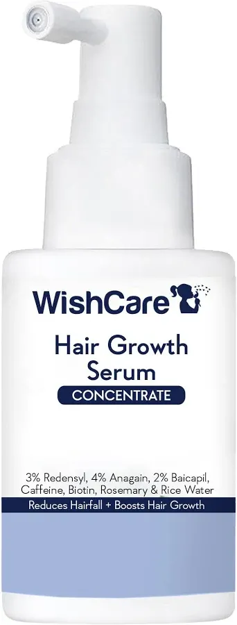 snippets: WishCare Hair Growth Serum Concentrate is a powerful formula designed to boost hair growth, making it one of the best hair growth serums available online., Enriched with Redensyl, Anagain, Baicapil, Caffeine, Biotin, Keratin, and Rice Water, it promotes thicker, denser, and healthier-looking hair., Its ultra-lightweight, leave-on formula ensures deep penetration without leaving a greasy residue.