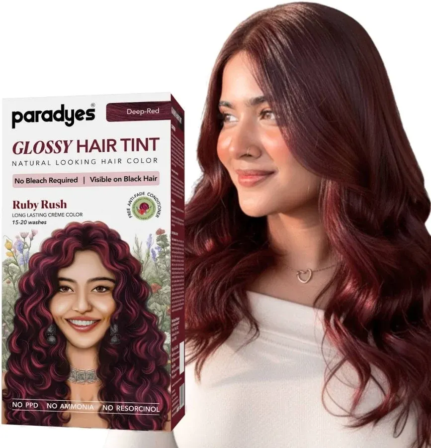 detailedReviews 5: content: I loved using this Paradyes Velvet Burgundy tint! It added a gorgeous burgundy shine to my natural black hair without needing any bleach. The colour looks rich under sunlight and subtle indoors—just the way I wanted. The formula is gentle, ammonia-free, and the included anti-fade conditioner really helps the colour last longer while keeping hair soft.