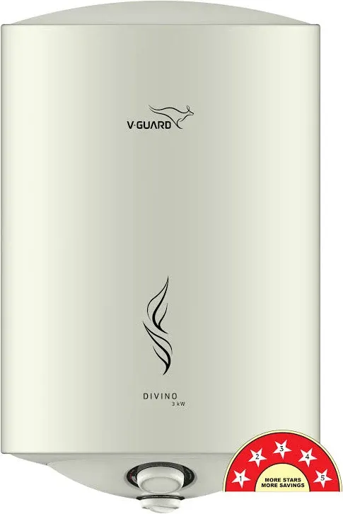 snippets: V-Guard Divino is a remarkable 15-litre storage water heater, boasting a BEE 5-Star rating for high energy efficiency., With a BEE 5-Star rating for high energy efficiency, its anti-corrosive features, including Advanced Vitreous Enamel Coating and Superior Incoloy 800 Heating Element, ensure sustained performance.