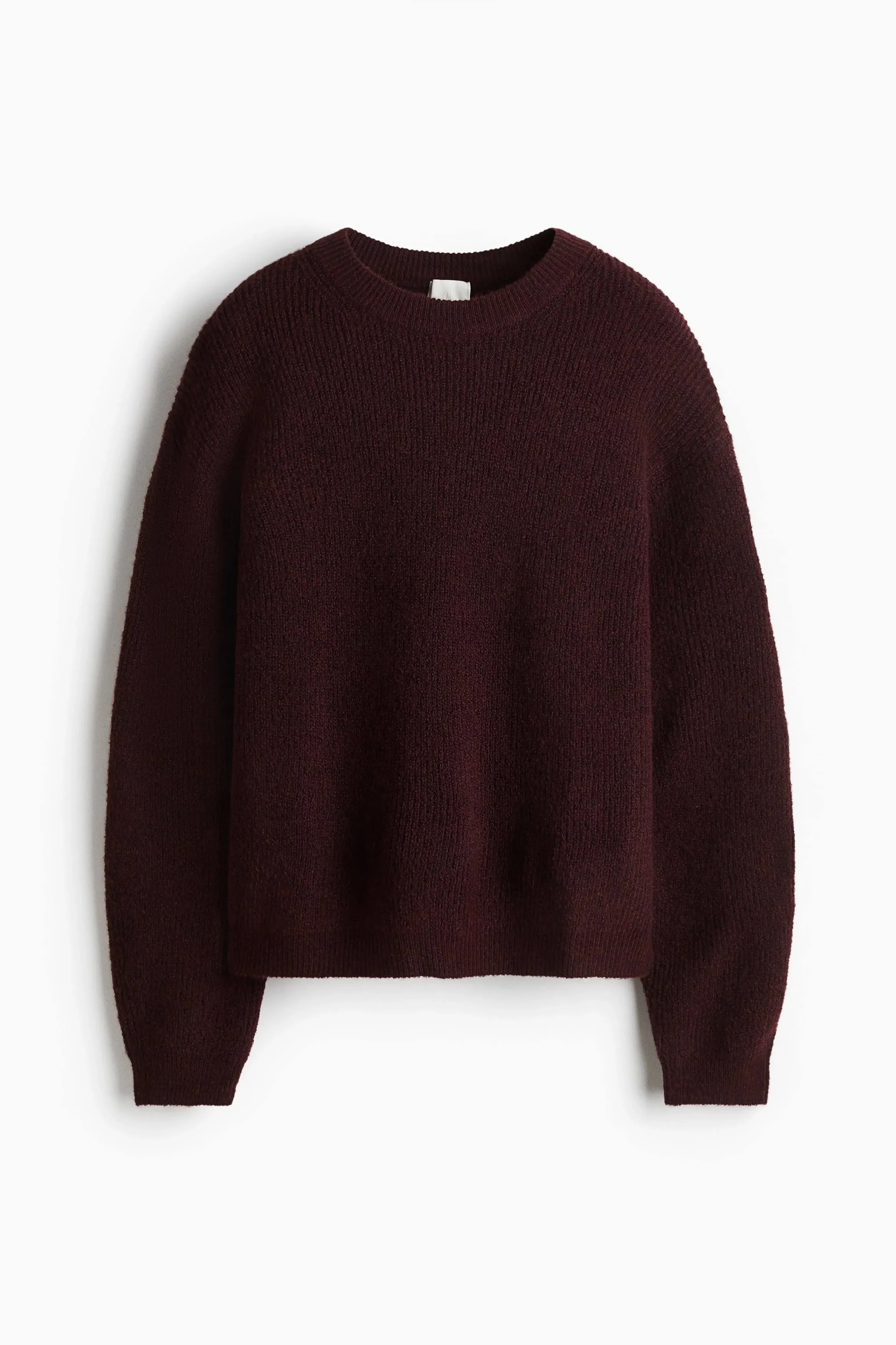 snippets: While discussing a user's outfit and the shift towards boxy clothing, another user mentioned a "Ladies Burgundy Rib-Knit Sweater M" as part of their closet purge. They found their old St. John suits resembled "lady cardigans" and were able to repurpose them by removing shoulder pads, suggesting a similar aesthetic could be achieved with such a sweater., I am loving the cardigan styles and blazers. I got the relaxed pocket sweater blazer from Loft and this souffle yarn short cardigan from Uniqlo. I also had an amazing "shopping in my own closet" moment, when I started seeing the "lady cardigans" everywhere. When I used to work in the big city many years ago, St. John was my suit of choice, and I've held onto those suits for years because they were just too nice to donate and I'm too lazy to try to sell them. Well, lo and behold, many of my suit jackets look exactly like the "lady cardigans," so I cut out the shoulder pads and am able to wear them again. I had forgotten how nice they are.