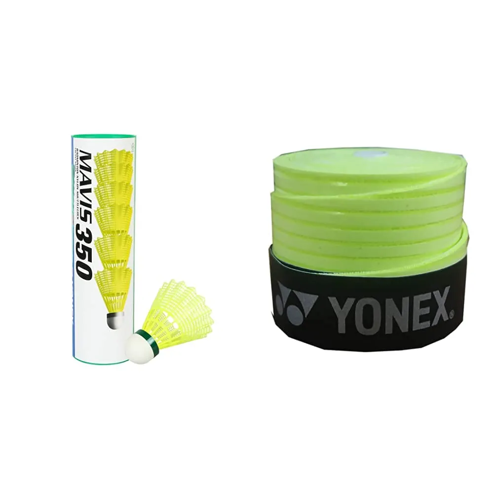 title: Yonex Mavis 350 Green Cap Nylon Shuttlecock (Yellow)+Yonex ET 903 E Super Rubber Badminton Grip (Yellow)