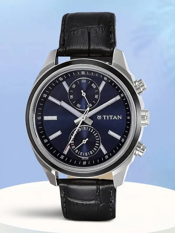 title: Titan Men's Midnight Precision: Multifunction Blue Dial with Classic Leather Strap Watch-NS1733KL01