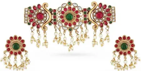 title: Rubans 22K Gold-Plated Stone Studded Choker Jewellery Set with Pearls For Women and Girls – Perfect for Weddings and Special Occasions