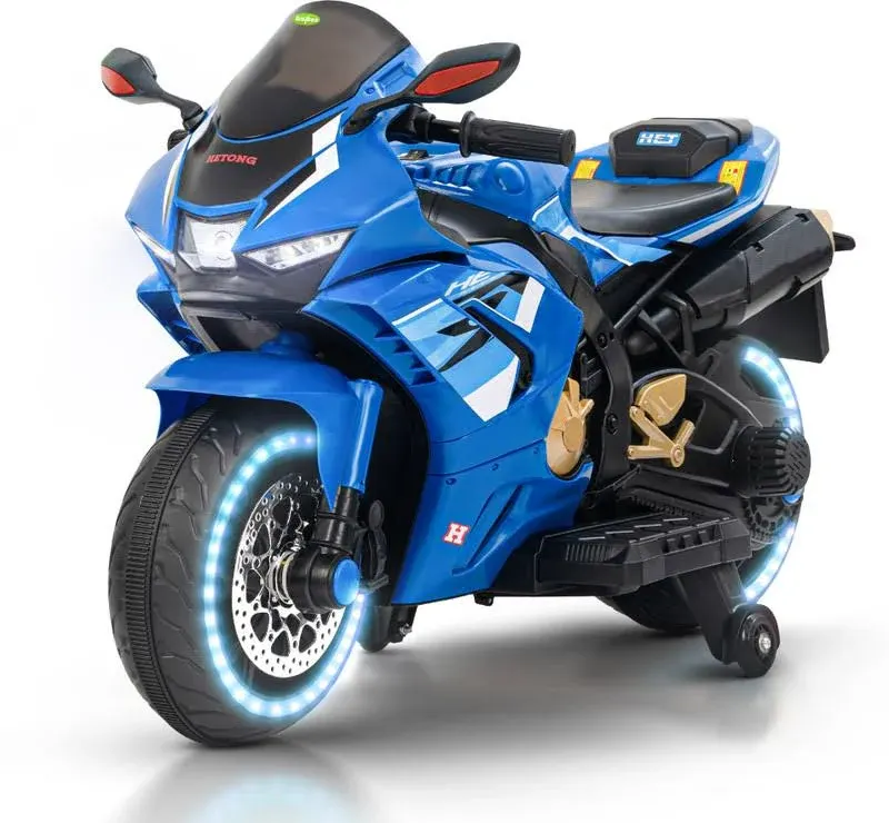 snippets: Designed with a hand accelerator, foot brake, LED headlight, and wheel lights, offering an authentic riding experience., Skill Development: Enhances motor skills, coordination, and confidence with a fun and engaging riding experience.
