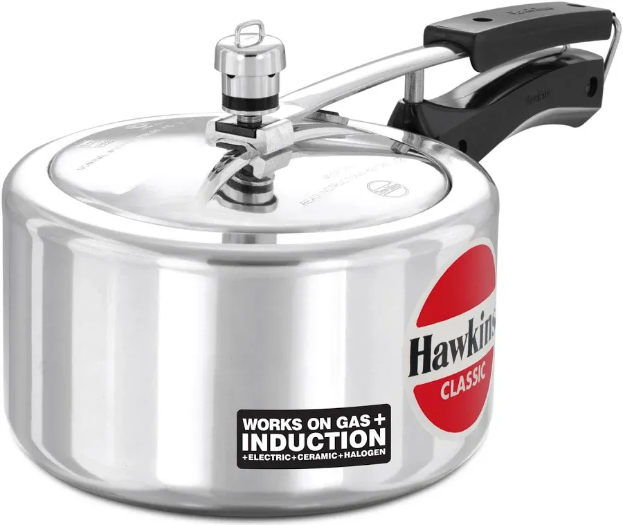 title: Hawkins Classic 3L Pressure cooker with induction base. Inner lid Aluminum body Induction compatible pressure cooker