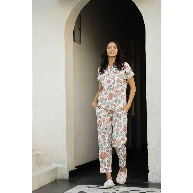 detailedReviews 24: content: The night suit looks good fitting is comfortable for sleeping in. This can be worn on trips or when our for a short walk as it looks quite smart with crocs or slippers. Some reviews mentioned that the colour fades after first wash but i did not experience this. Much recommended.