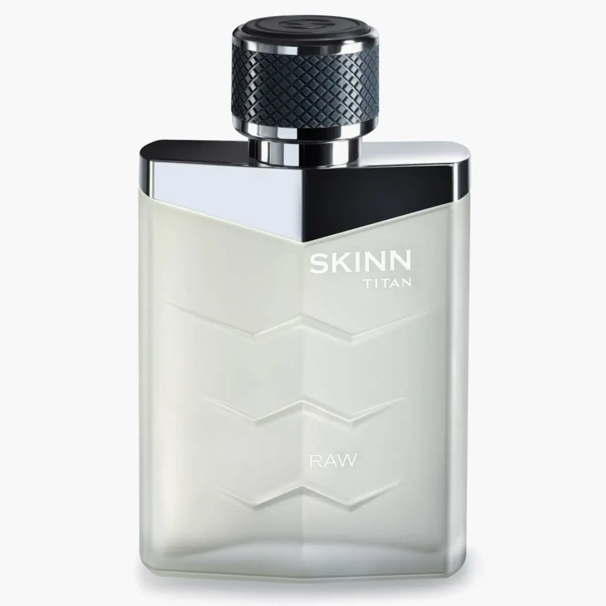 items 4: content: Skinn Raw is a premium fragrance by Titan crafted especially for men. It?s known for its fresh aquatic scent with a slightly citrusy and woody base.Fragrance Profile: Opens with crisp lemon and bergamot blends into subtle floral notes and settles into warm musky undertones.Longevity: Moderate ? lasts about 5?7 hours depending on skin type and weather.Occasion: Ideal for daily wear office and casual outings. Refreshing enough for summer.Packaging: Elegant and minimalist with a classy glass bottle.