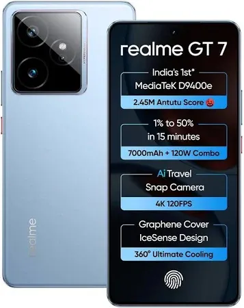 snippets: The Realme GT 7 is powered by the MediaTek Dimensity 9400e chipset, coupled with the Immortalis-G720 GPU.