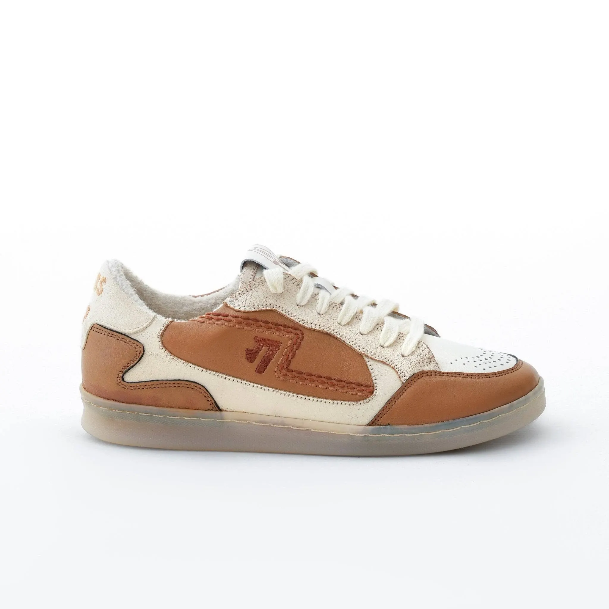 name: Gully Number 001 | Kulfi Badaam White & Brown Leather Sneakers | Shoes For Women With Embroidery | Women | Gully Labs Women / UK 7