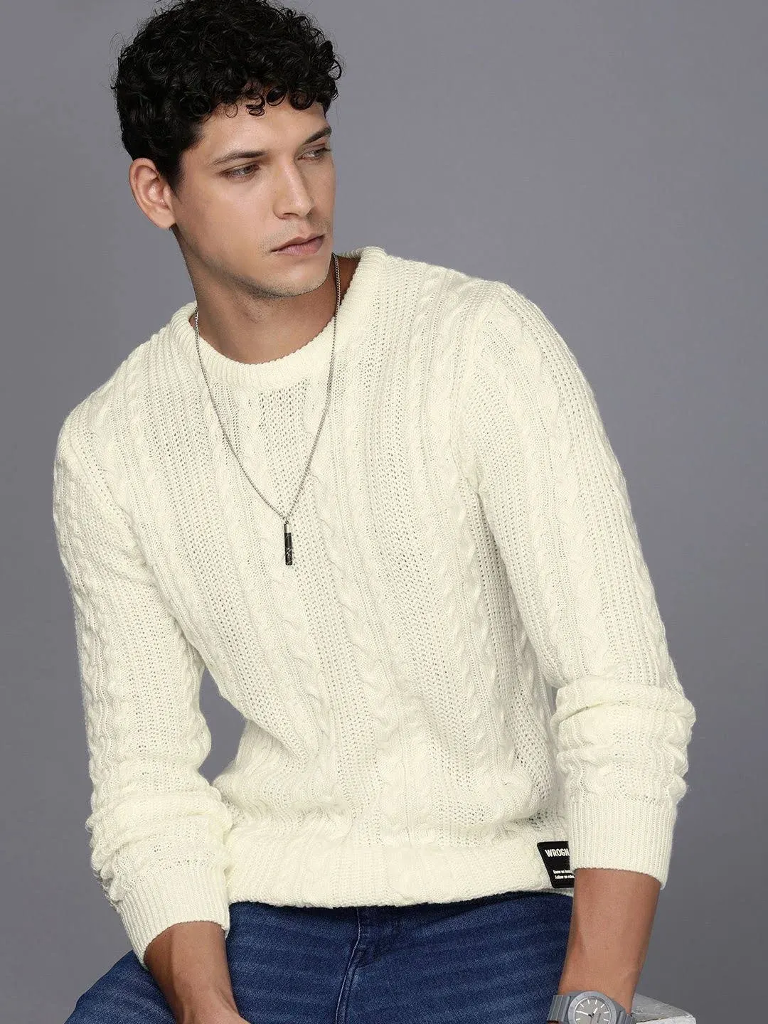 items: items 1: content: Users are impressed with the overall quality and appearance of this WROGN cable knit pullover, finding it to be a "nice sweater" that "looks really good" and is a "best buy."