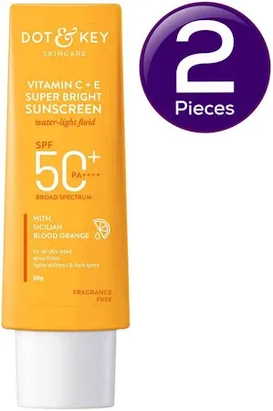 snippets: Texture and Application: Features a water-light, non-sticky, and quick-absorbing formula that leaves no white cast, making it suitable for all skin types. ([dotandkey.in](https://dotandkey.in/products/vitamin-c-e-sunscreen-spf-50-pa?utm_source=openai))