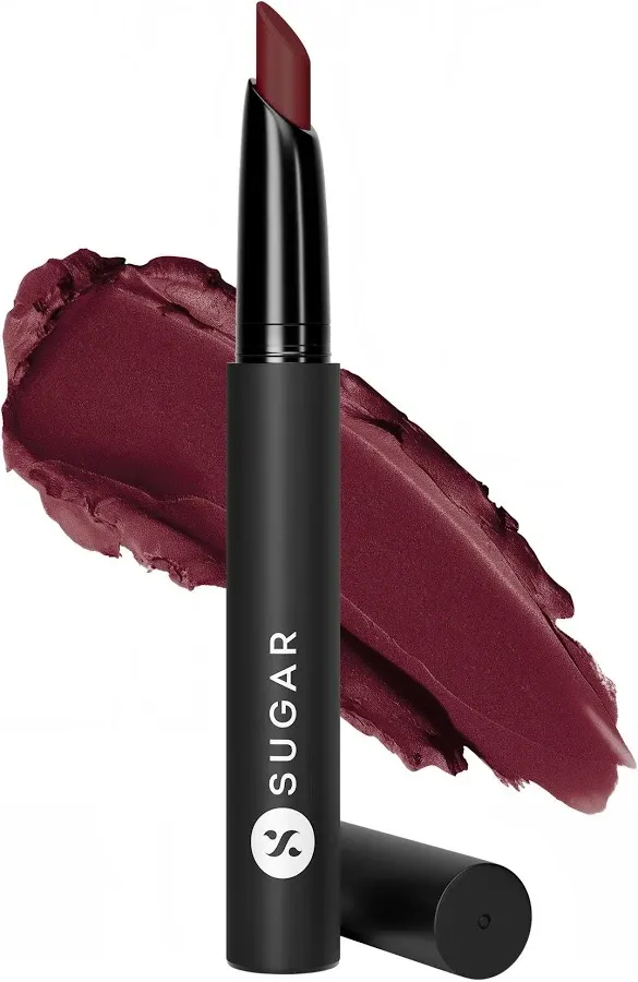 title: SUGAR Attack Matte Bullet Lipstick- Maroon | Highly Pigmented, Plumps Lips, Long Lasting | Cruelty-Free | At Nykaa