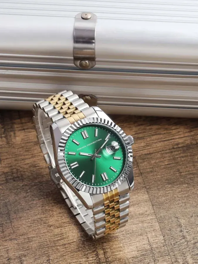 items: items 1: content: Users are consistently impressed by the unique and attractive color combination of this French Connection watch, with the green dial and gold two-tone strap creating a premium and eye-catching aesthetic that stands out from more common watch designs.