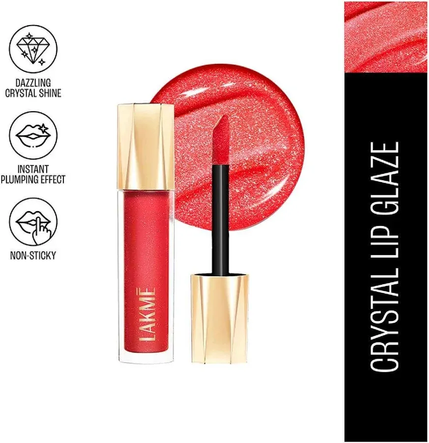 title: Lakme Glitterati Lip Glaze, High Shine Plumper Lip Gloss Oil With Collagen - Scarlet Spritzer (Red, 5ml) At Nykaa, Best Beauty Products Online