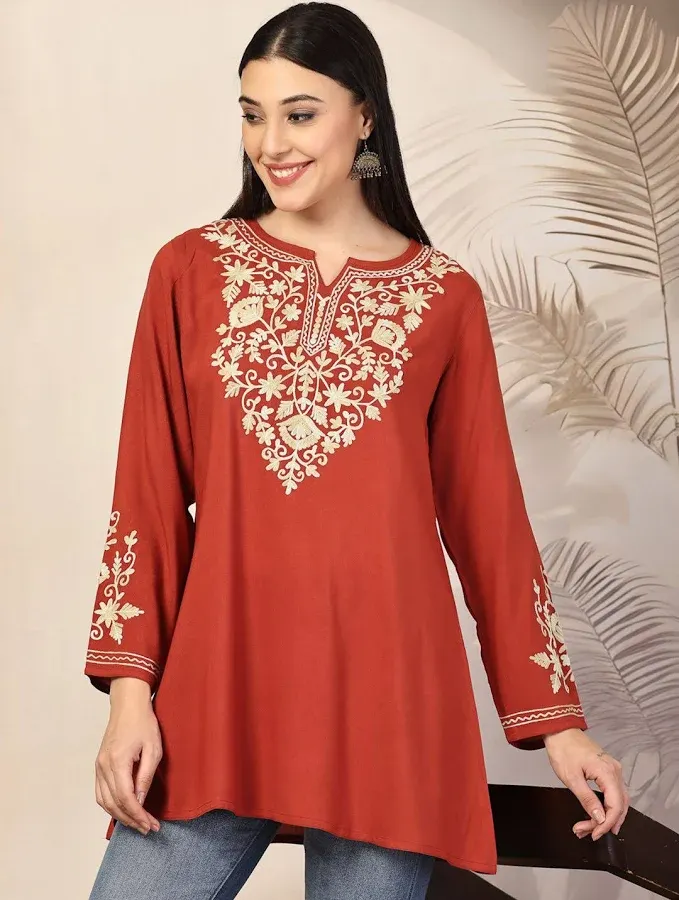 link: http://www.myntra.com/Kurtis/QAZMI/Qazmi-Jasmine-Kashimiri-Aari-Work-Viscose-Rayon-A-Line-Flared-Kurti/31031159/buy