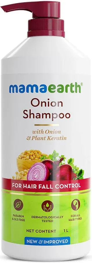 title: Mamaearth Onion Shampoo for Hair Growth & Hair Fall Control - Onion & Plant Keratin - 1 L
