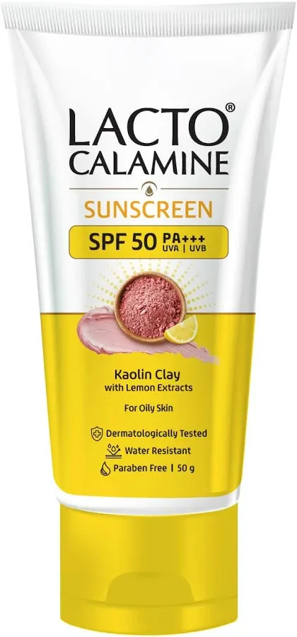 title: Lacto Calamine Sunscreen SPF 50 | 50g | PA +++ For Oily Skin | UVA – UVB | Water Resistant & No White Cast | With Kaolin Clay, Vitamin E & Lemon