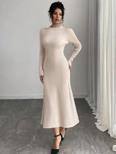 title: TRAQUILA Women Solid Round Neck Formal Midi Dress(XL) by Myntra