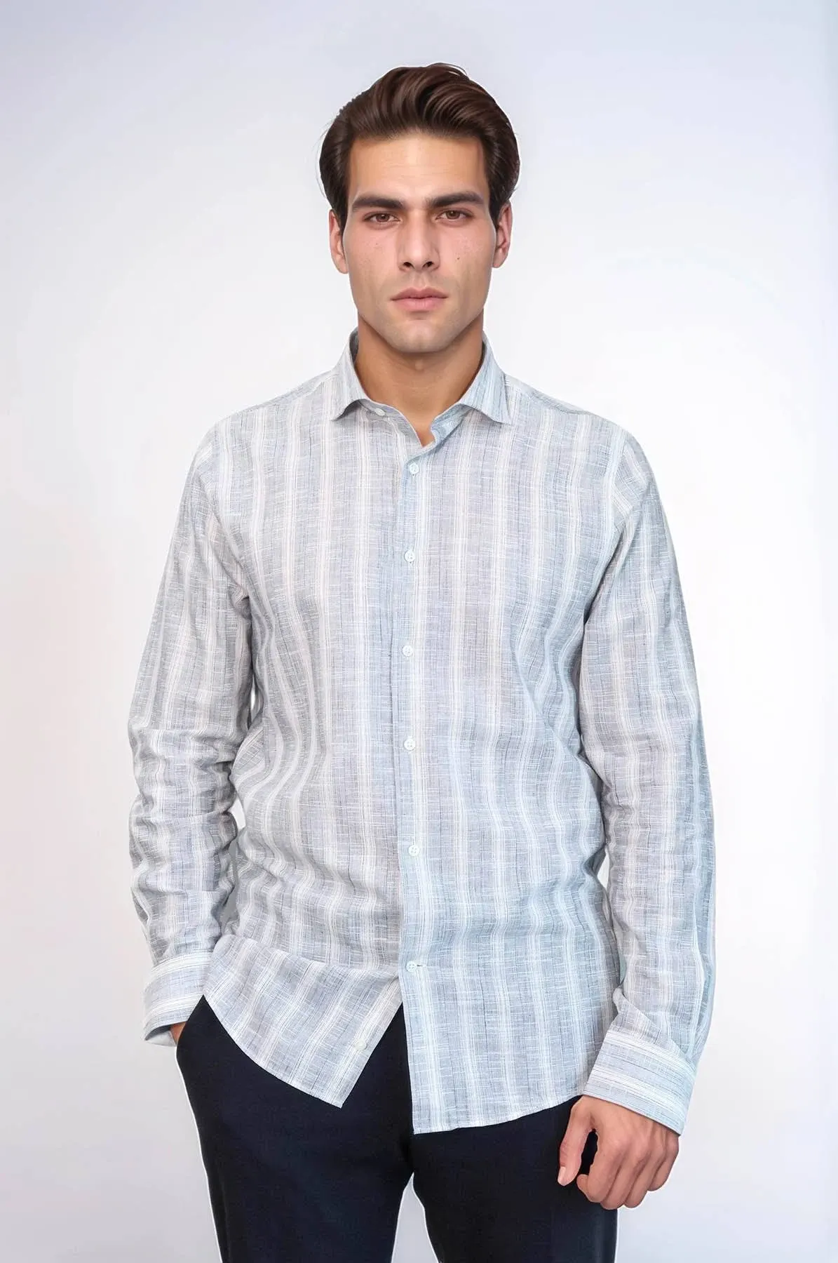 name: Wessi Striped Blue Slim Fit Cotton Shirt for Men, XXL
