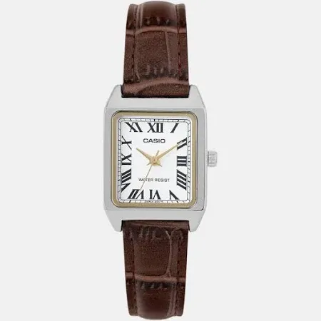 snippets: ENTICER LADIES LTP-V007L-7B2 – Elegant Rectangular Leather WatchRefined and minimalist, the Casio LTP-V007L-7B2 is a timeless piece for everyday sophistication., Featuring a crisp white dial, slim black leather band, and a sleek rectangular chrome-plated case, it’s a perfect blend of classic design and comfort.