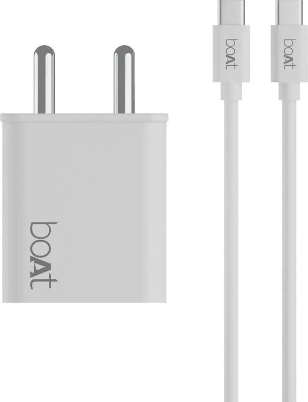 title: boAt WCDV 22.5W Dual Port Charger with 22.5W Power Delivery Support & 18W Quick Charge 3.0, Type C to Type C Cable(White)