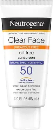title: Neutrogena Clear Face Oil-Free Broad Spectrum SPF 50 Sunscreen, 3.0 fl oz (88 ml)
