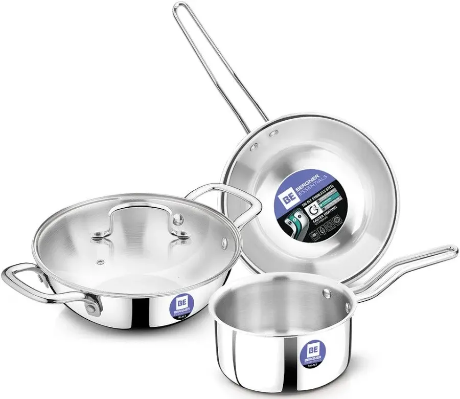 directLink: https://www.zebrs.com//products/423843/bergner-be-essentials-tripro-triply-stainless-steel-3-pcs-cookware-set-24cm-3-l-kadai-14cm-1-1-l-teapan-22cm-1-l-frypan-consumes-less-oil-even-heat-distribution-induction-bottom-bergner-423843?srsltid=AfmBOoqOHZVZZtaPceK6X8099Fp1OKqzQlHeghcMmQSd_UugEoisWkAJJOA